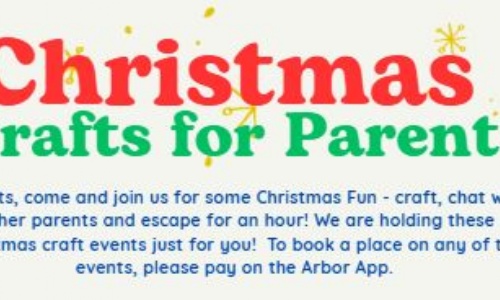 We will be holding Christmas Craft for Parents events in our Community Room. Please see the flyer attached for further information. We look forward to seeing you there.